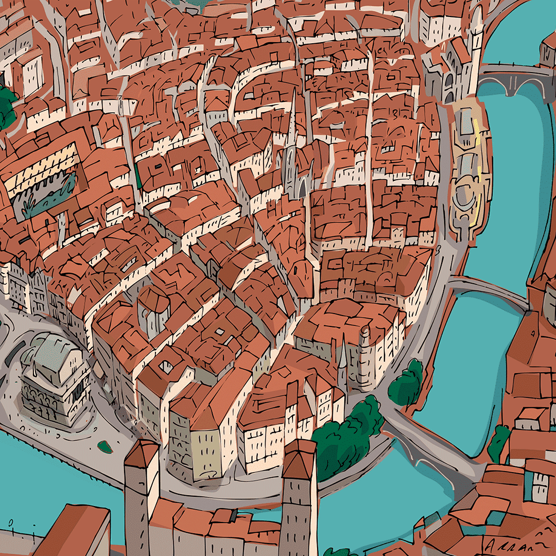 Impreso en tela de lienzo, montado sobre bastidor y enmarcado con un perfil de aluminio.